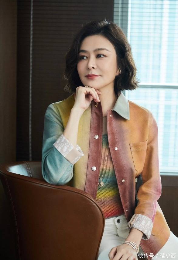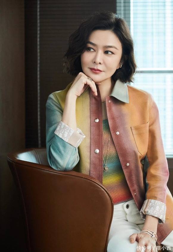 此发型自带慵懒随性感,处处透着精致。老实说,这种短款微卷发不太好搞,尤其是后脑勺处的头发,如果有人帮忙弄一下就更好了。看完了发型,紧接着欣赏上半身的穿着。叠穿技巧大家都很熟悉,关之琳最外层穿了一件渐变色彩的翻领衬衫,就算不用手摸只用眼看,都能发现面料非常的光滑,软糯感太招人喜欢了。